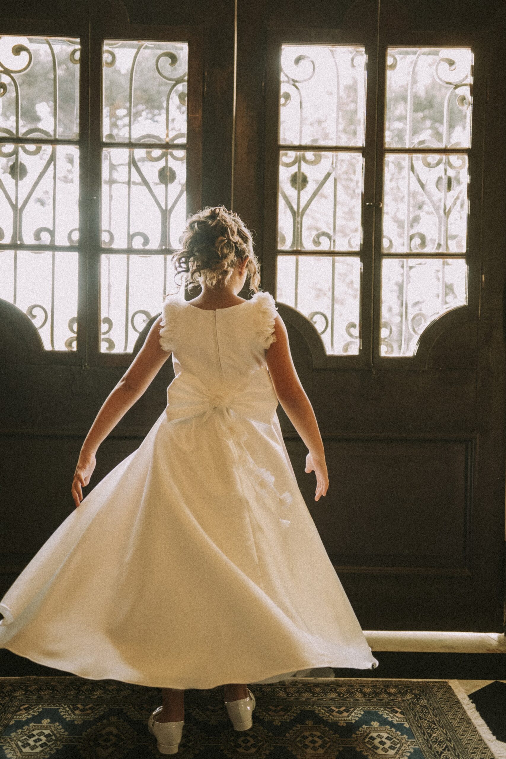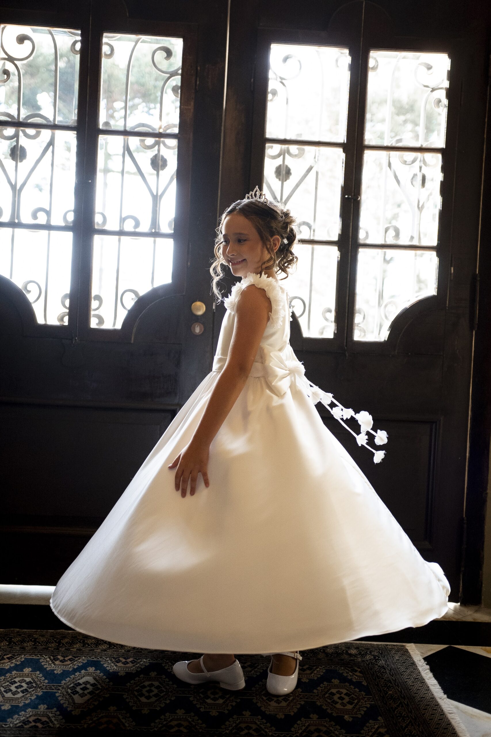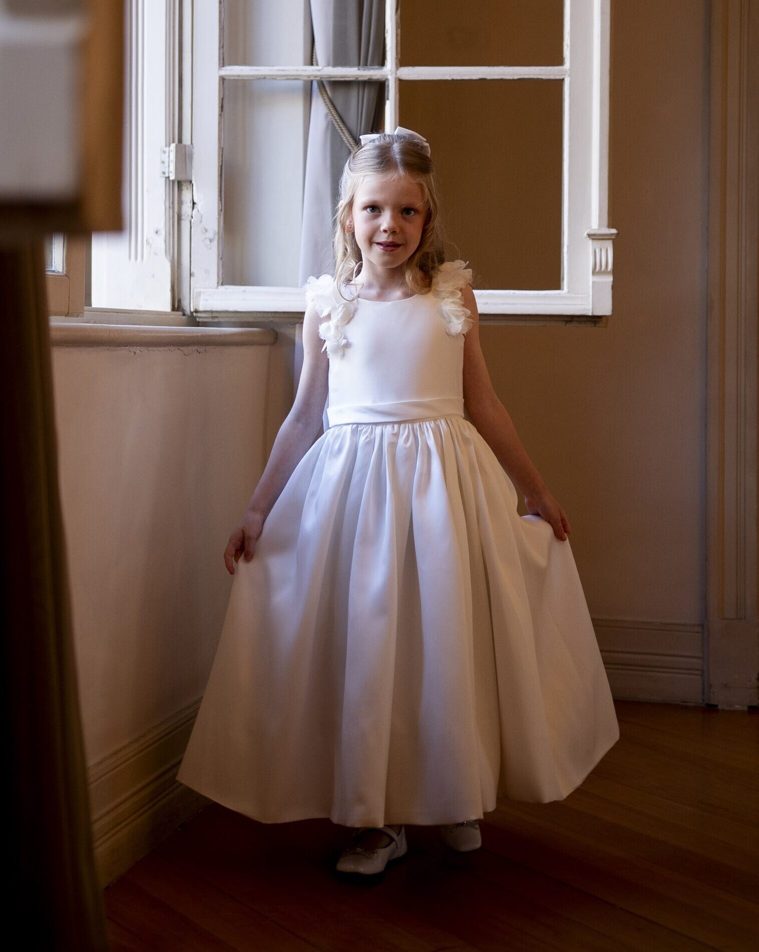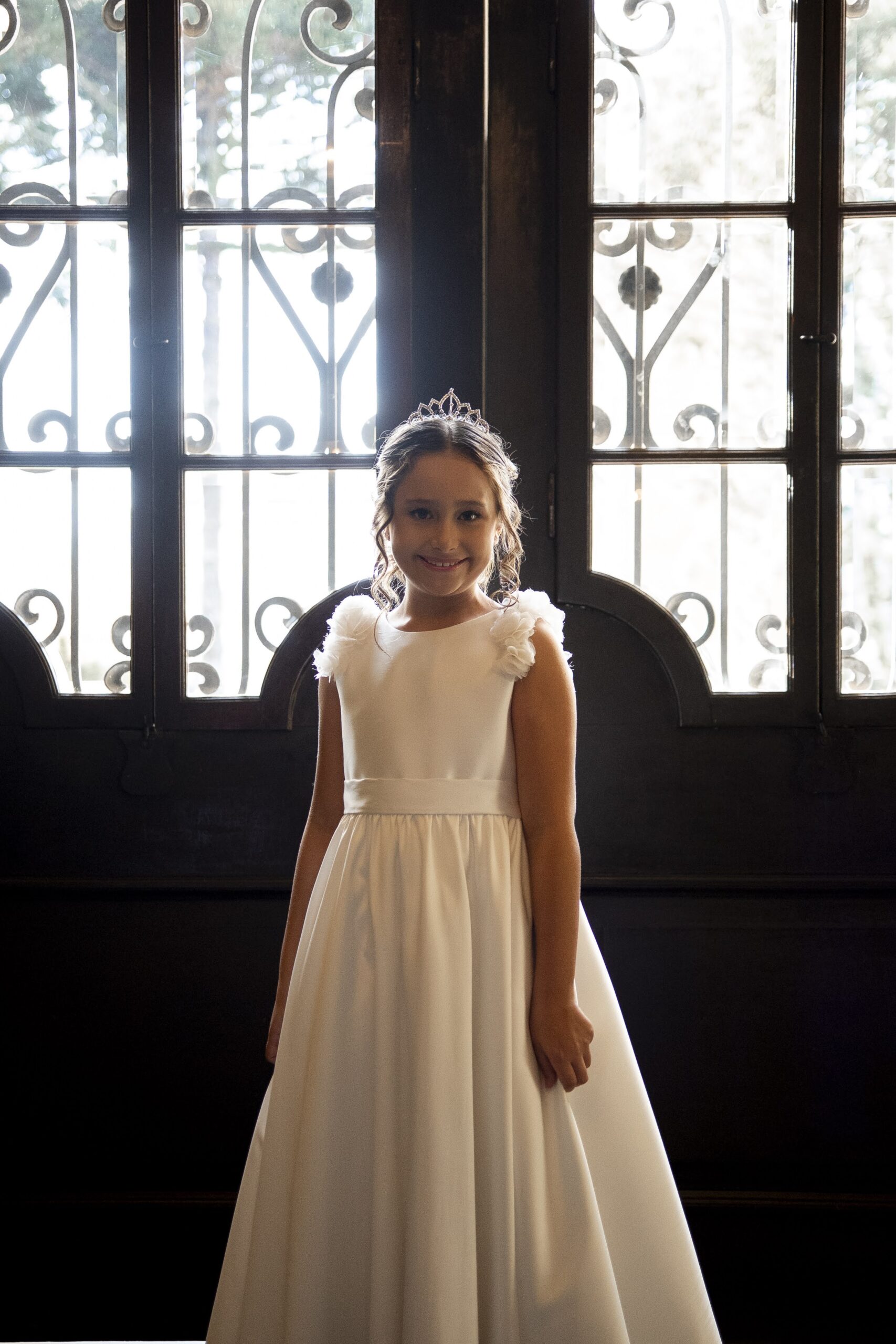 Confecção própria em zibeline com aplicação de flores nas alças e laço costas.