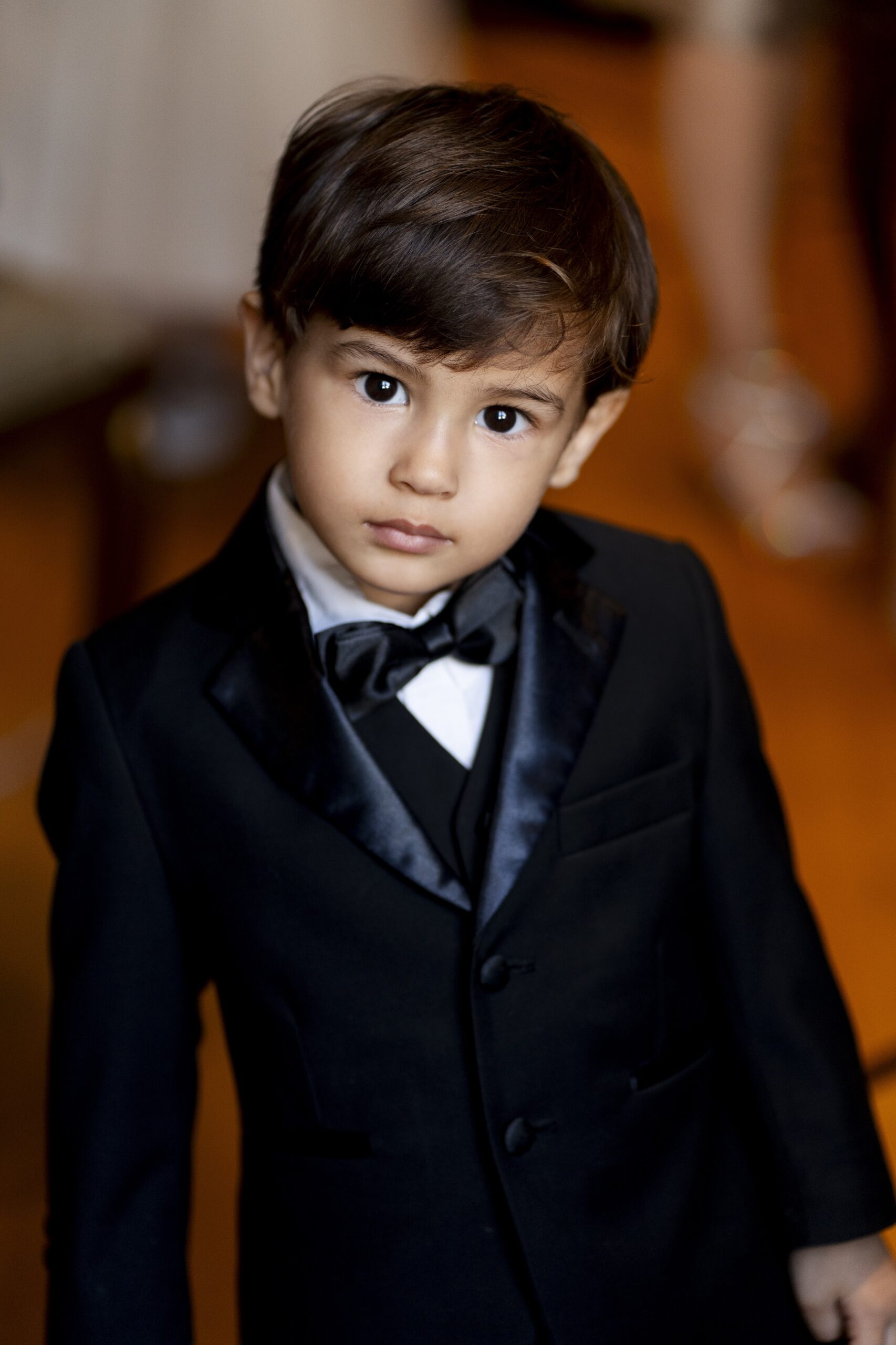 O traje é composto por camisa manga longa branca, calça social, paletó, colete e gravata borboleta.
